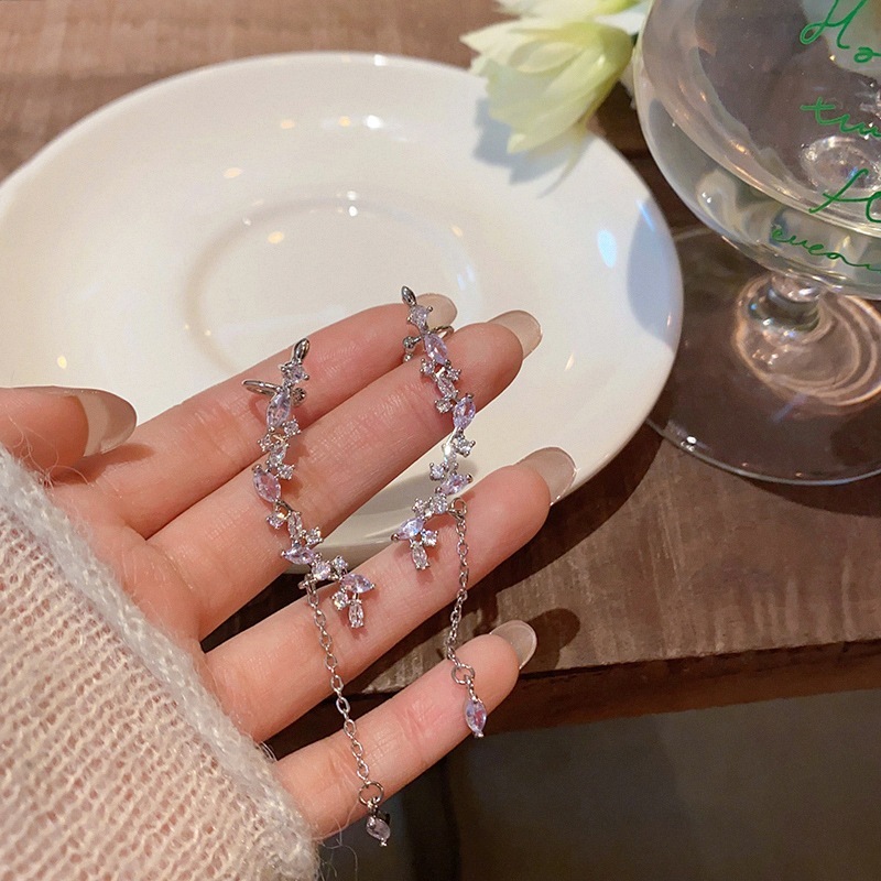 女性用のエレガントなタッセルフラワーイヤリング森ガールスタイルエルフイヤリングティアドロップロングイヤリングイヤーカフイヤリング