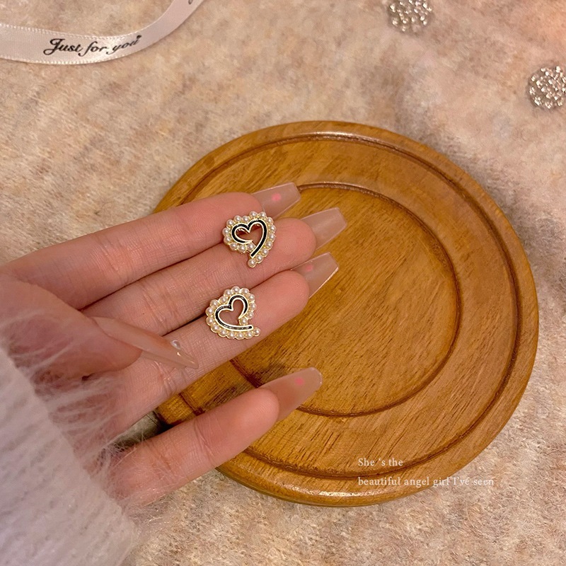 女性用のフレンチスタイルのハート型パールイヤリングユニークなデザインピーチハート型のスタッドイヤリング