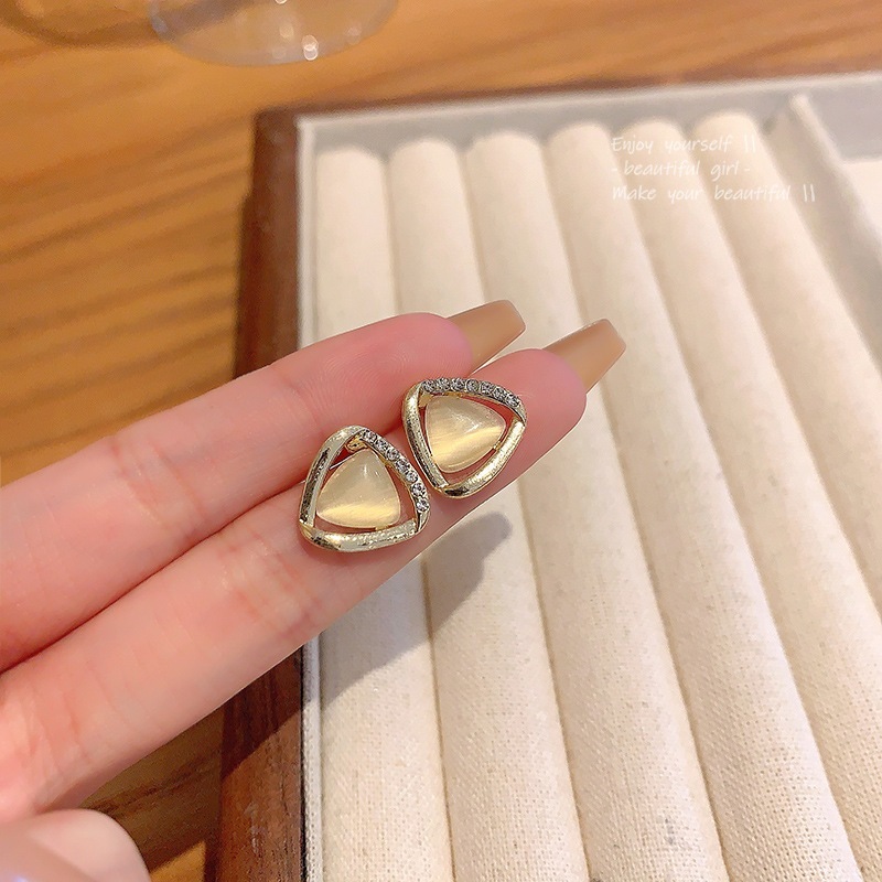 S925 スターリング シルバーの針が美しく輝く女性用キャッツアイ ストーン スタッド イヤリングインスタグラムにふさわしいスタイルの高級デザイン