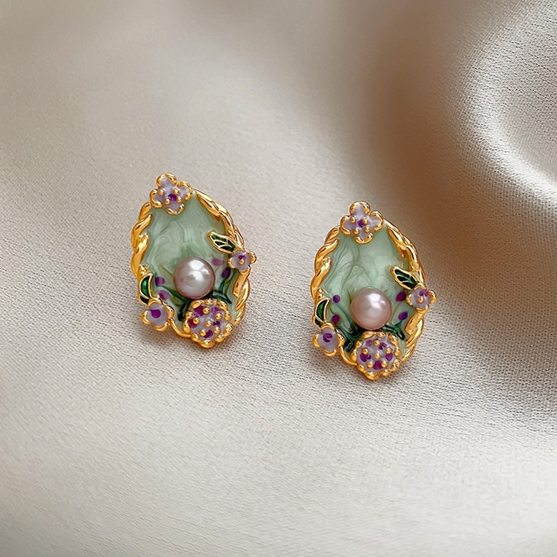 レディースパールイヤリングカラフルな油絵の花のスタッドイヤリングヴィンテージスタイルのパールイヤリング