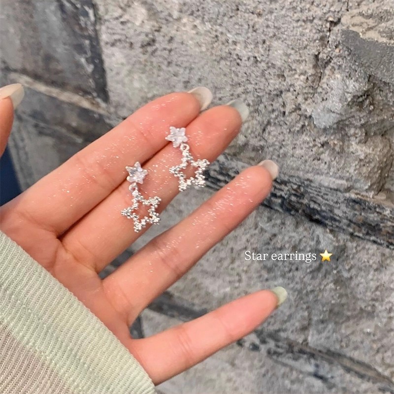 シルバーの中空五芒星シルバーフラグメント女性用大型フープイヤリング高級スタッドイヤリングユニークなイヤリング