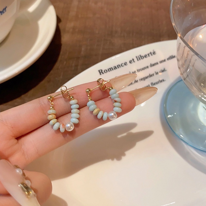 高級感がありカラフルな女性用イヤリングビーズのスタッドイヤリングを備えた万能スタイル