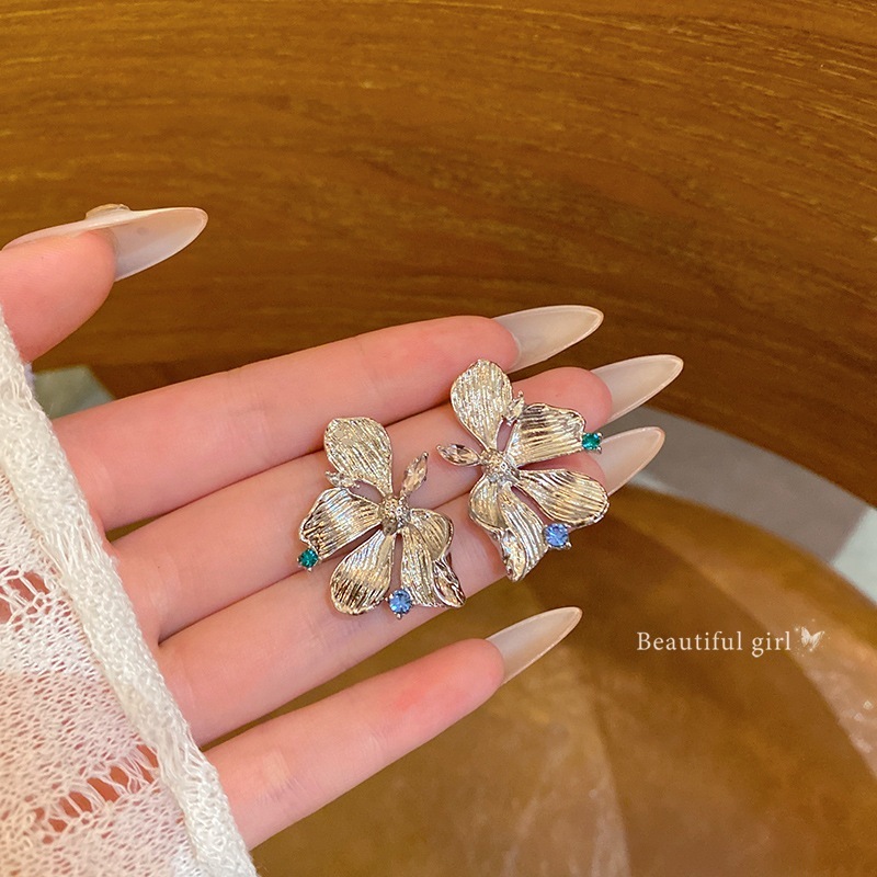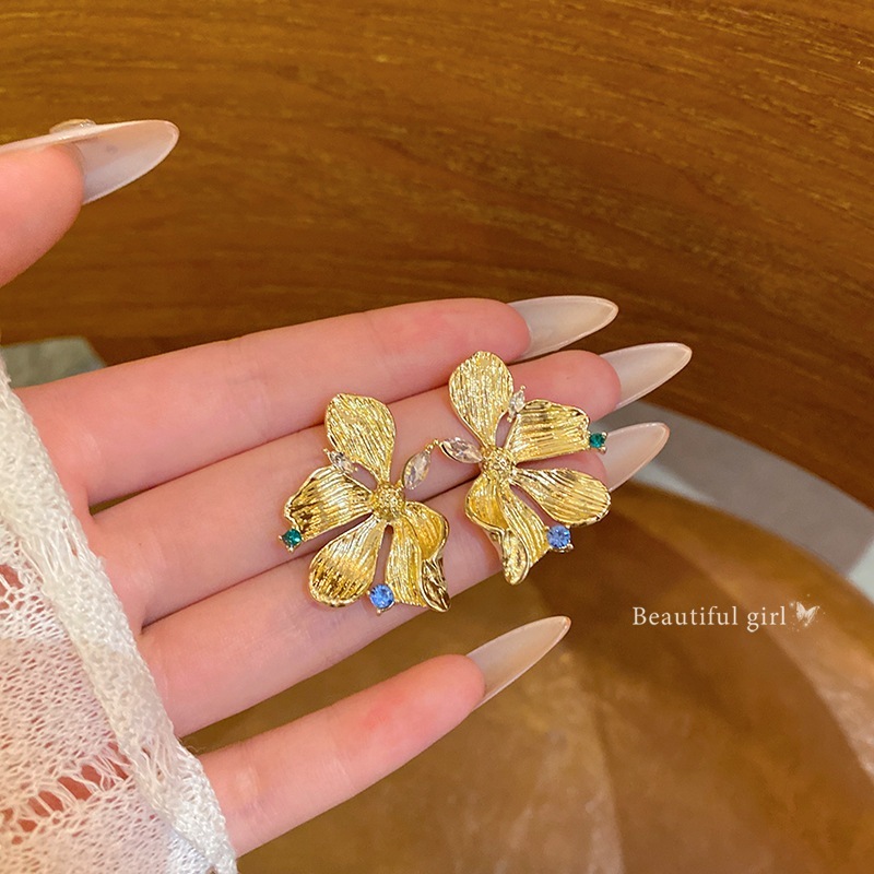 高級感がありスタイリッシュな女性用ゴールド ダイヤモンド フラワー スタッド イヤリング
