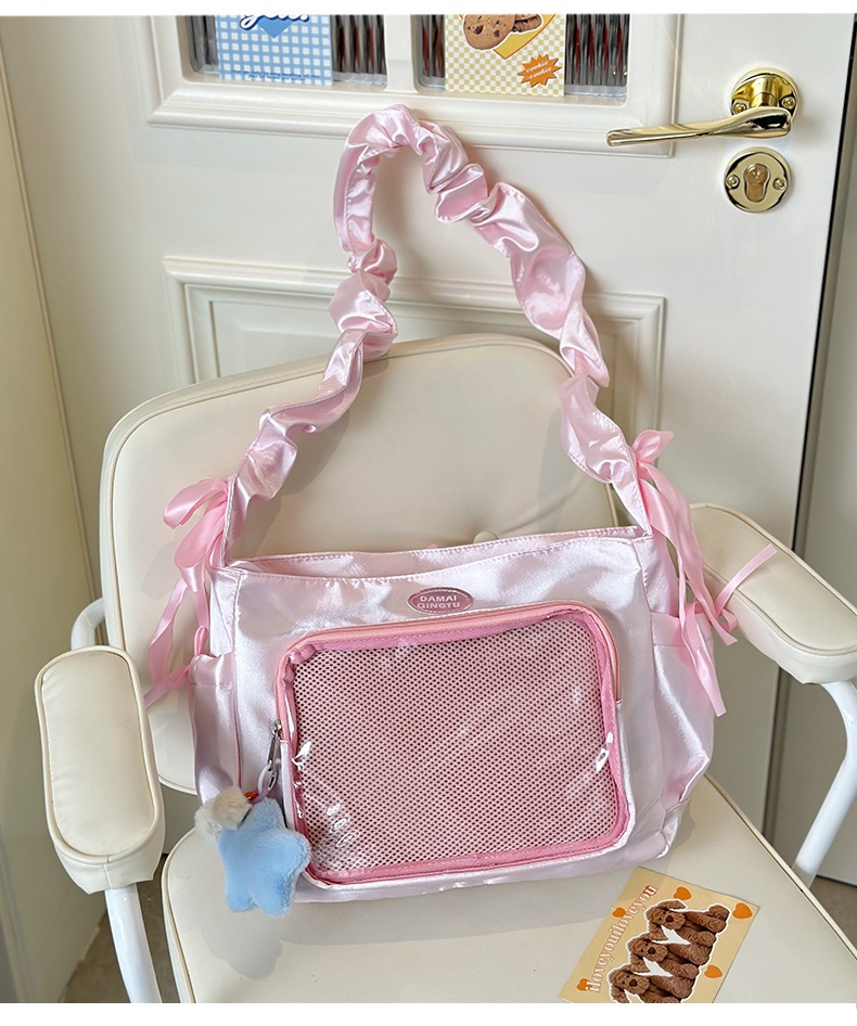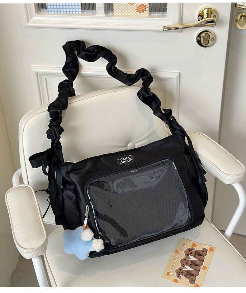 【速達!】カジュアルトートバッグ女性大容量プリーツ多ポケット斜め掛け痛バッグ