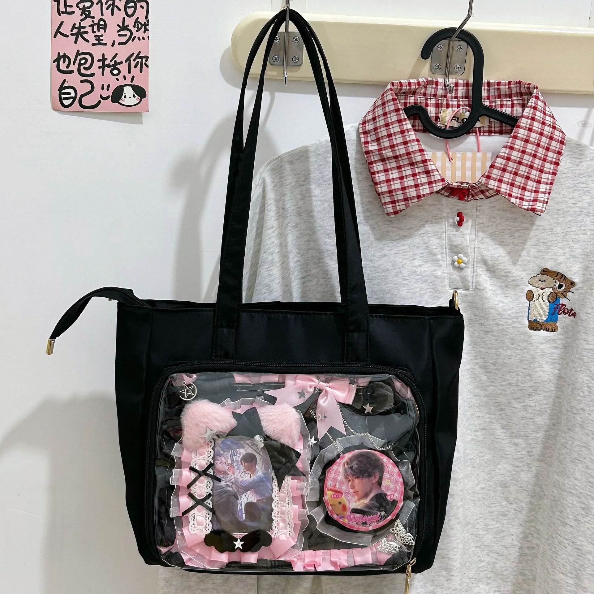 【速達!】女の子の日常透明大容量二次元バタバタバッジ片肩斜め掛け痛バッグ女補習袋リリス