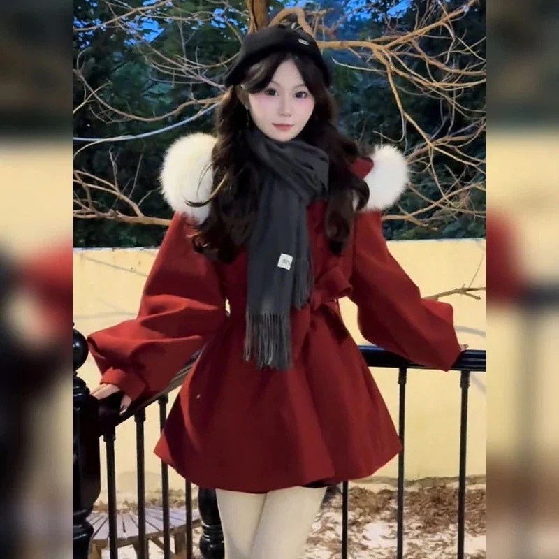 【3日以内出荷】サンタコスプレ 冬 コットン レッド コート レディース クリスマス 新年 中わた入り 厚手ツイード ジャケット 韓国 サンタコス