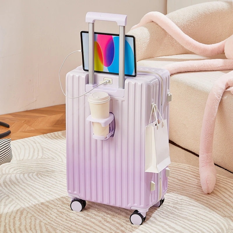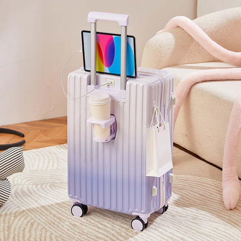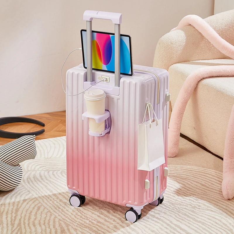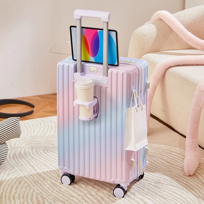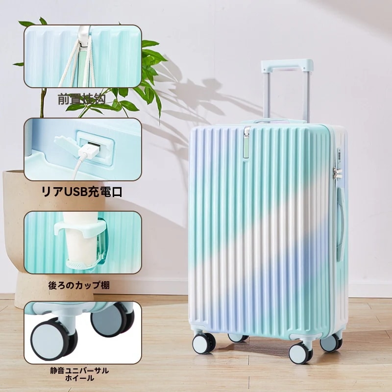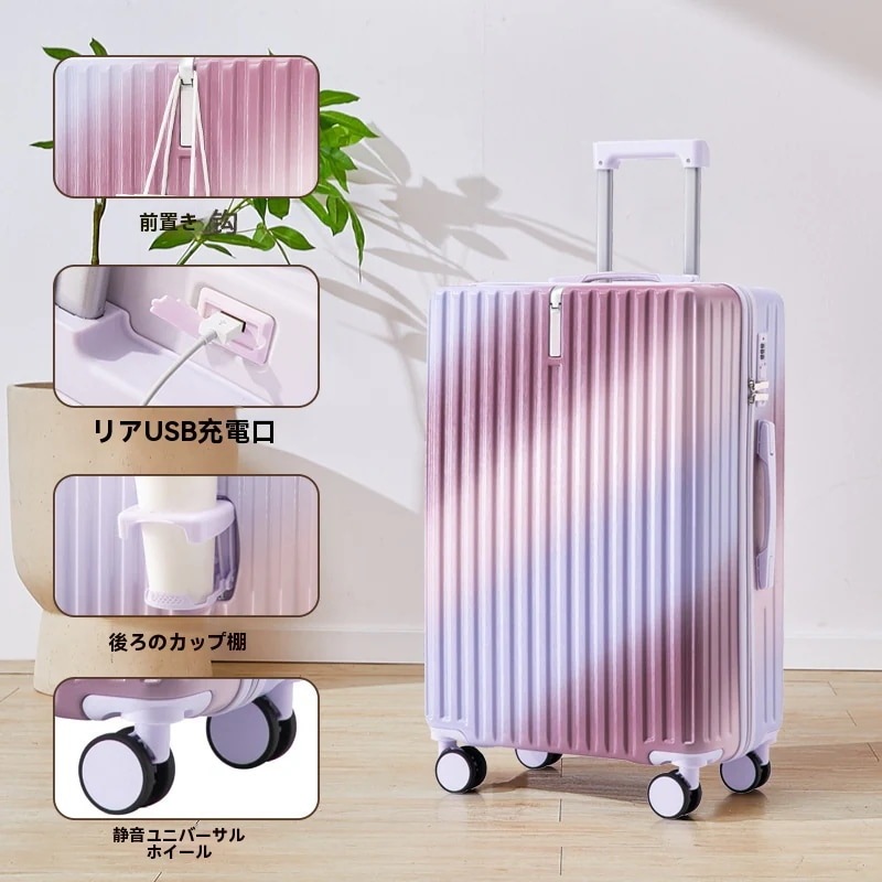 ins韓国グラデーションスーツケース 充電口 カップホルダー付き 大容量 軽量 静音 小型 丈夫で長持ちするキャリーバッグ ダブルキャスター 隠しフック 短途旅行 修学旅行 出張 機内持ち込み