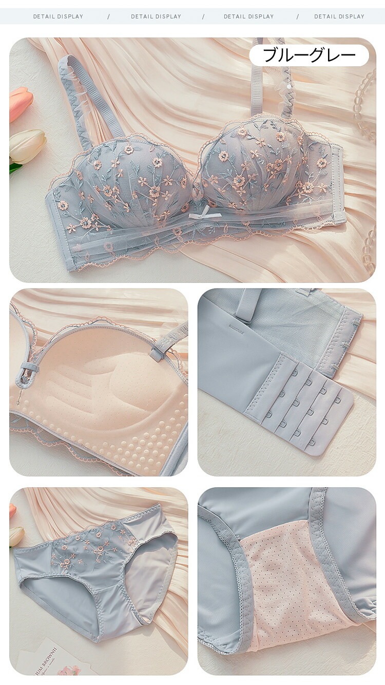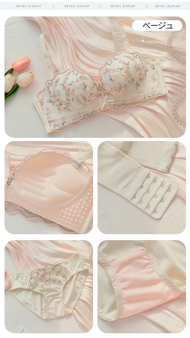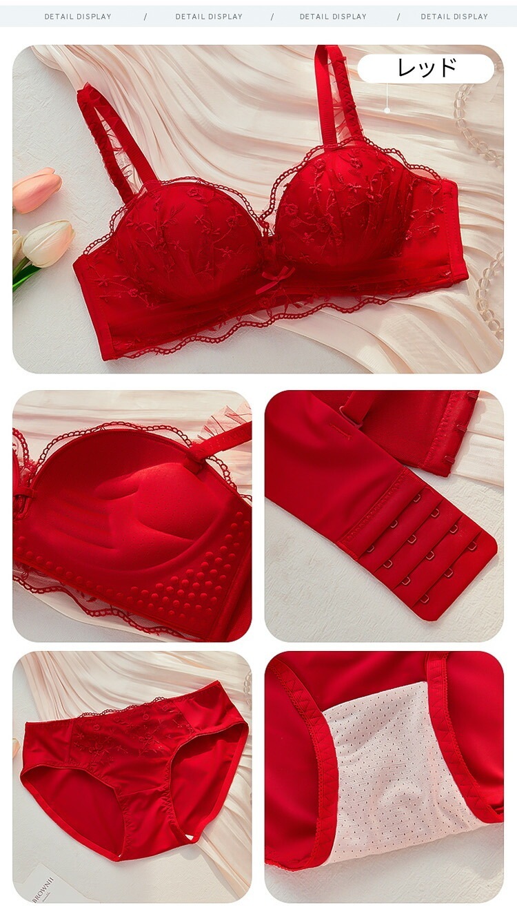 2点セット 脇高でしっかり補正&谷間!やわらかノンワイヤーブラ 美胸 美背 脇高 フルレース 総レース 谷間 ブラジャー ショーツ ブラショーツ ランジェリー インナーノンワイヤー