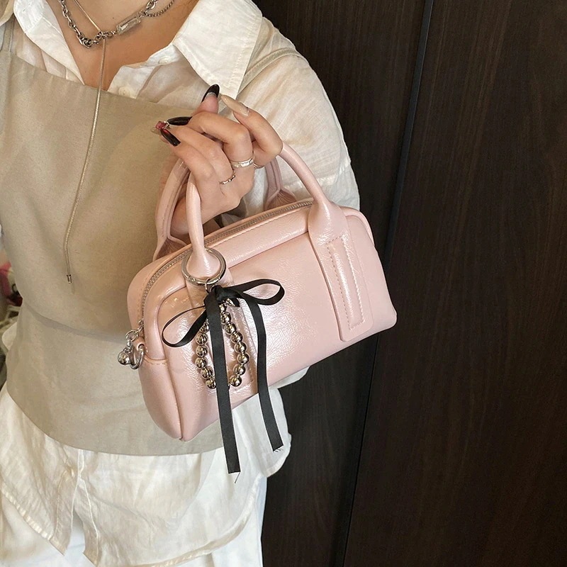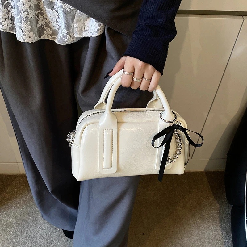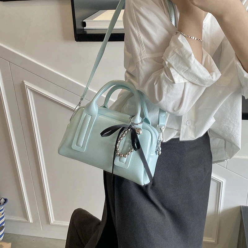 韓国ファッション トレンディなハンドヘルドボストンバッグ女性の新しいシンプルなシングル肩のバッグクロスボディ 横長ボストンバッグ ショルダーバッグ