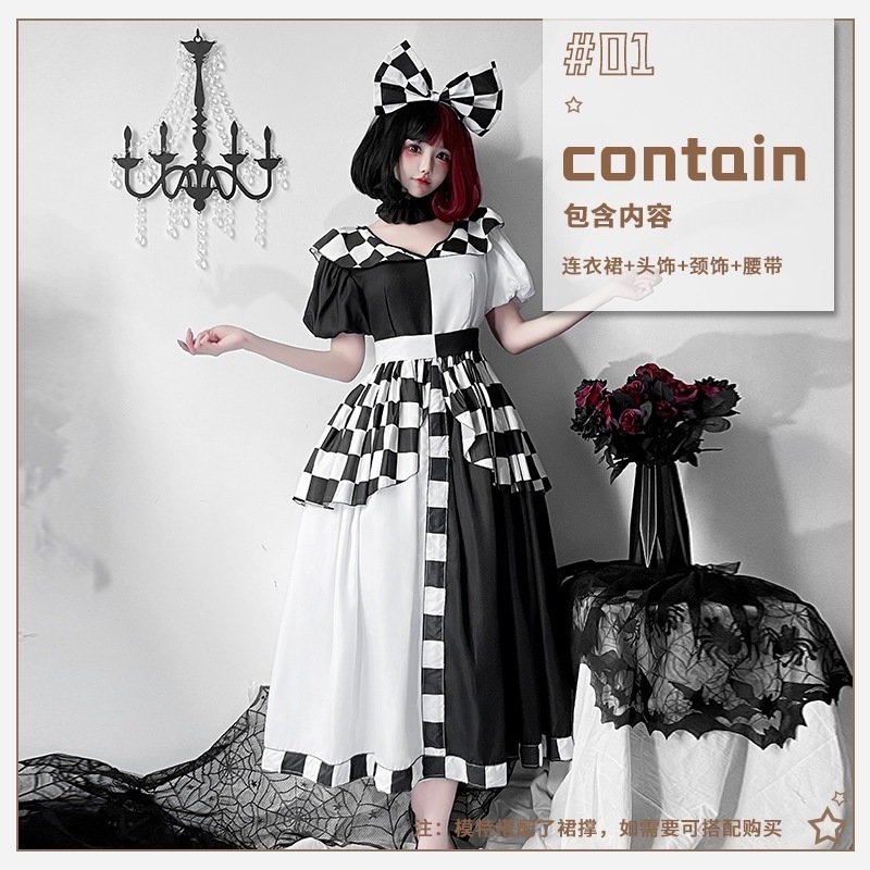 万聖節 コスプレ ハロウィン ハロウィン衣装ミッキー黒白チェッククイーン衣装パフォーマンス衣装アリスコスプレメイドピエロプリンセスドレス