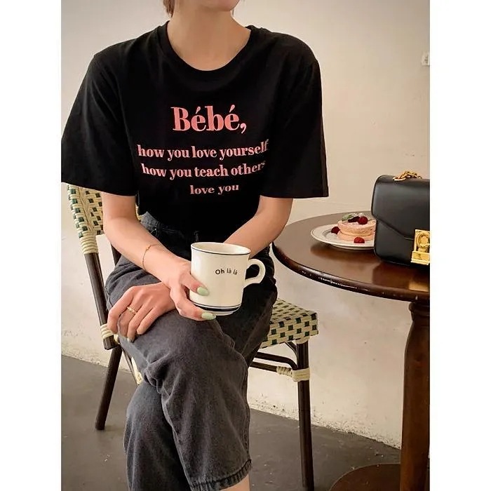 カラー刺繍Tシャツ 半袖ランドネック大人可愛いロゴTレディースカットソー アメリカンスタイル半袖マイナーブランド新作 デザイン性豊かシンプルレタープリントトップス ルーズフィット半袖レター T シャツ