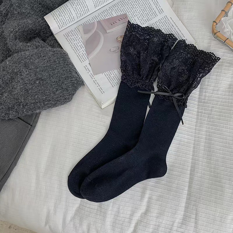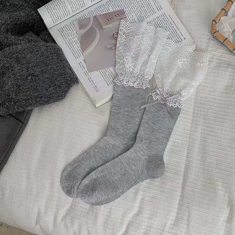 韓国風ソックス夏用の薄手デザインパッチワークレースとリボン用途が広くInstagram 風のミドル丈ソックスバレエ風ソックス