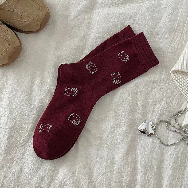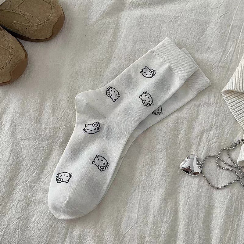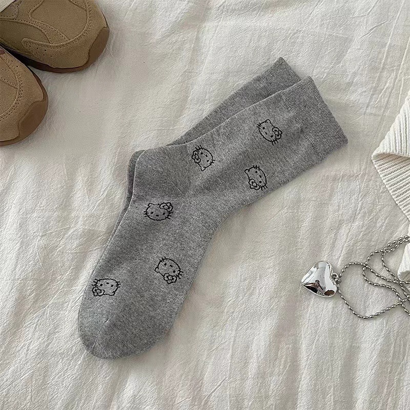 女の子向けの韓国風のかわいい猫の靴下漫画風多用途のミドル丈靴下秋冬用の学生用スラウチソックス