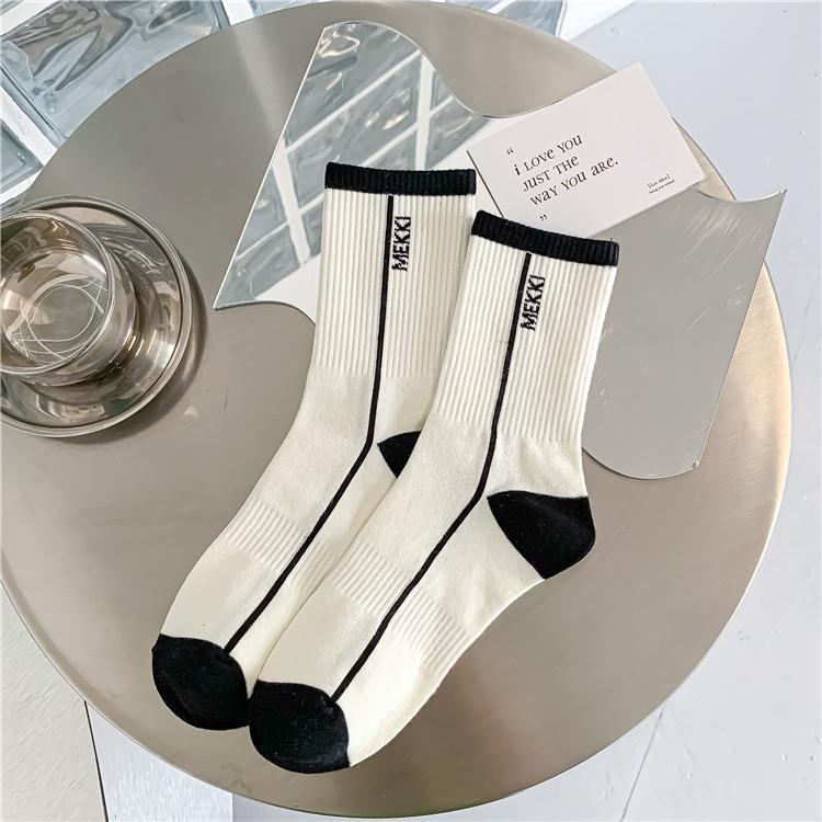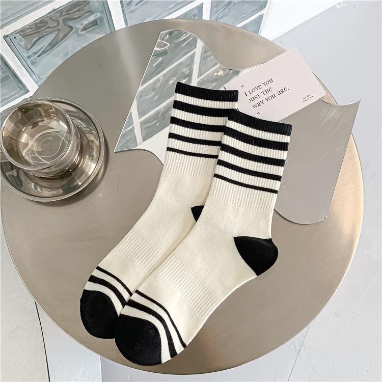 韓国風のM字型レディースミドル丈ソックストレンドの韓国スポーティスタイルファッショナブルで快適多用途