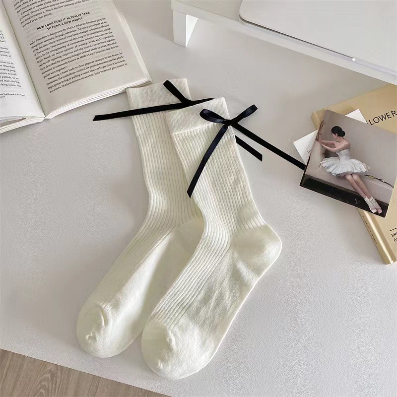 かかと部分に韓国風のシームレスなハンドメイドのリボン無地日本のインスタイルスイートな JK ミドルカーフソックス多用途のスラウチソックス