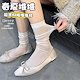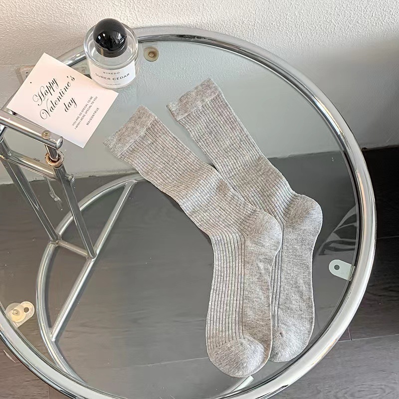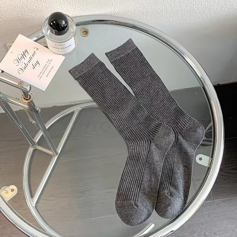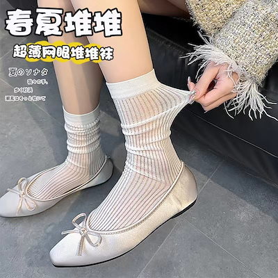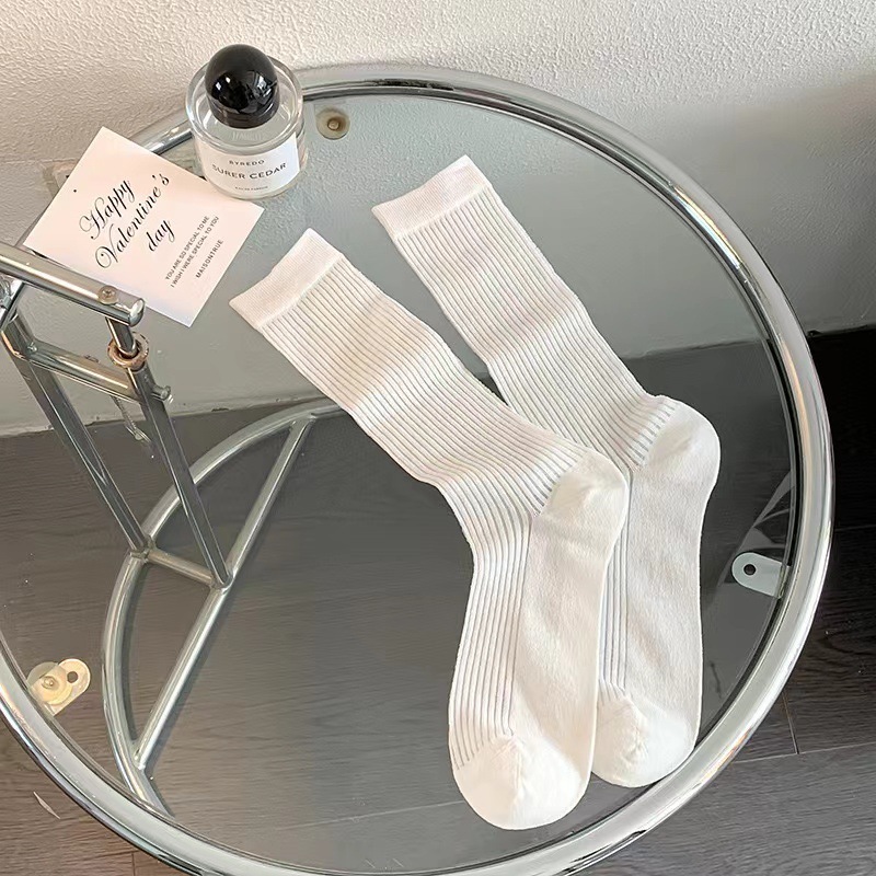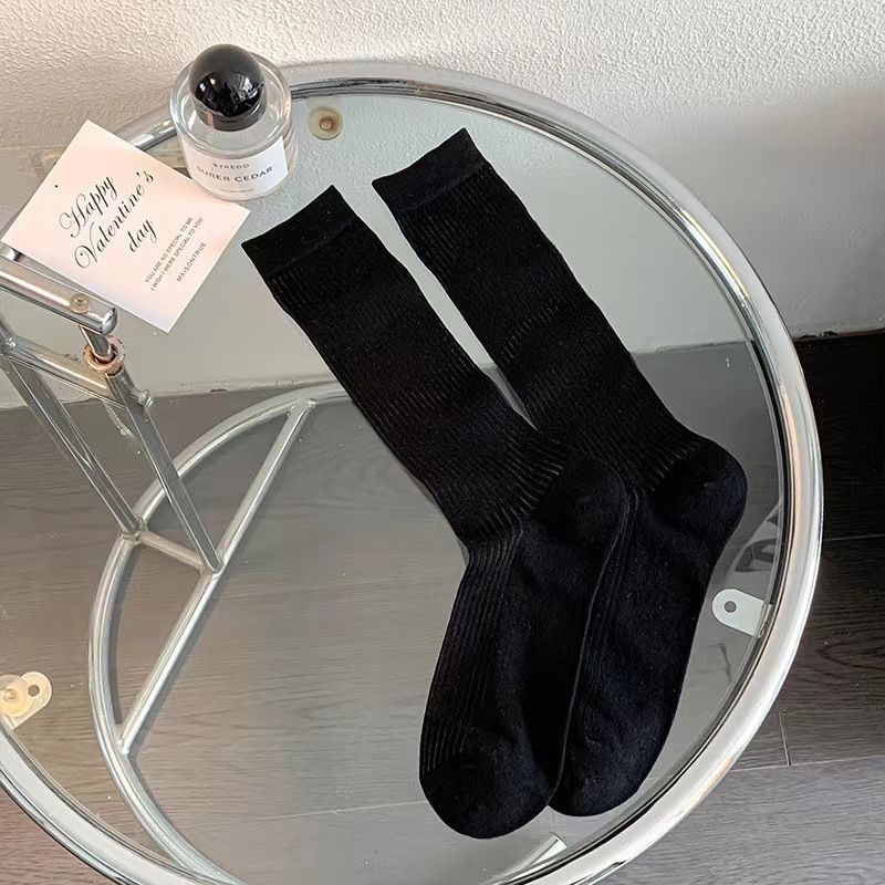 韓国風バレエ風スラウチソックスレディース夏用薄手万能ミドルカーフソックス黒と白のストライプ柄JKソックス