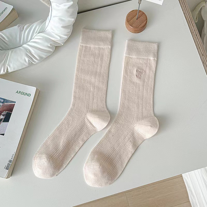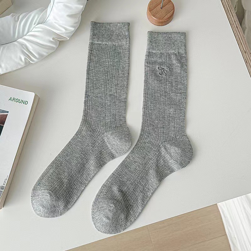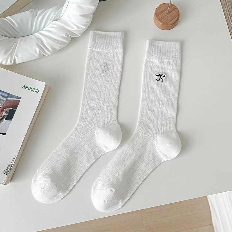 韓国風コットン ボウ スラウチ ソックス夏用細身スタイル韓国風トレンドのミドル カーフ ソックス女性用多用途バレエ スタイル ソックス