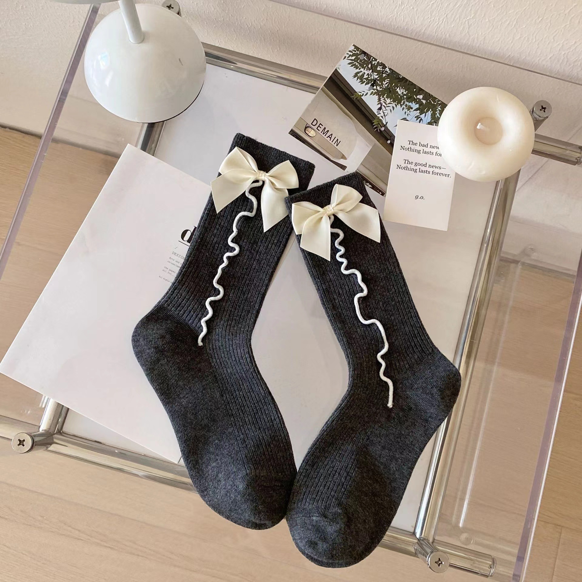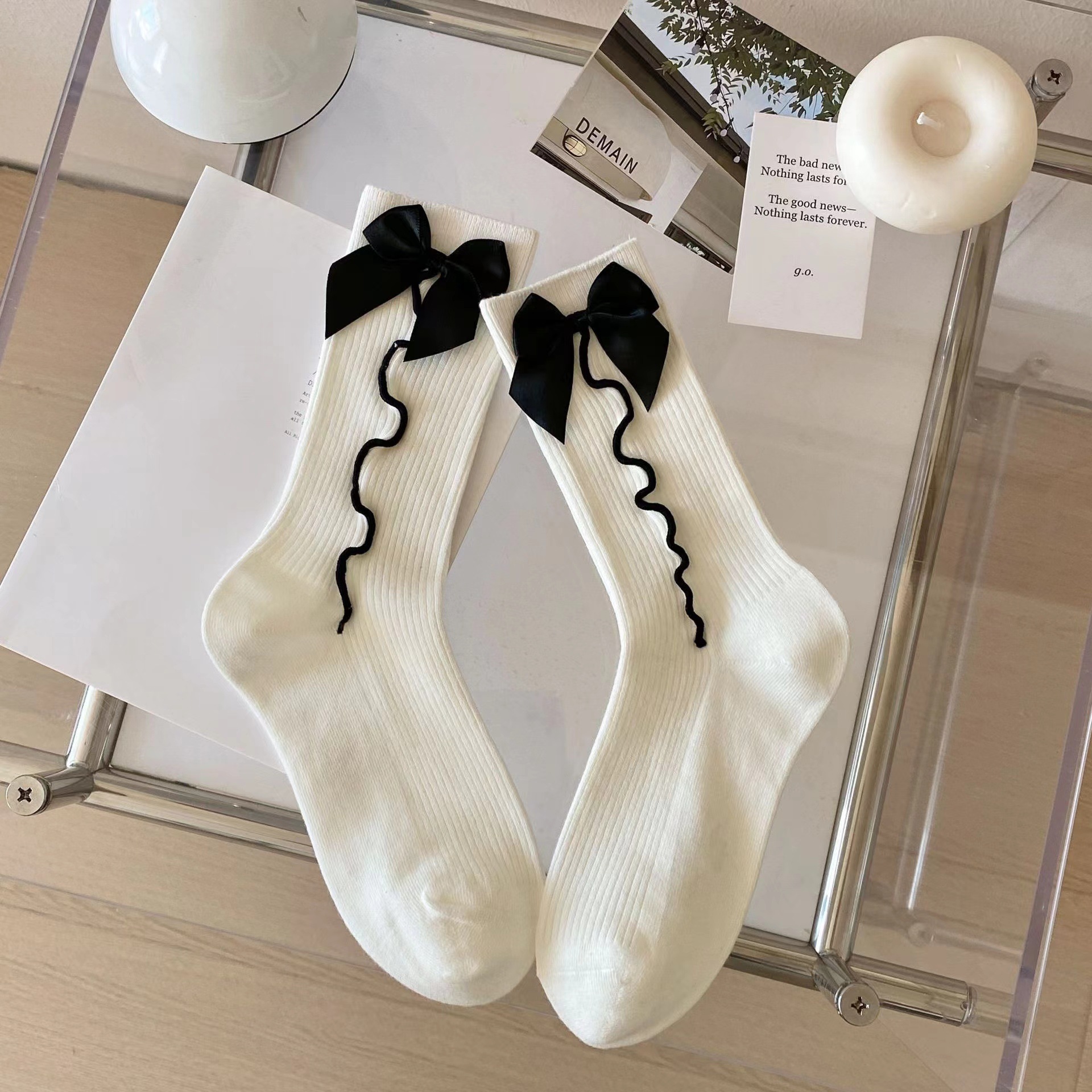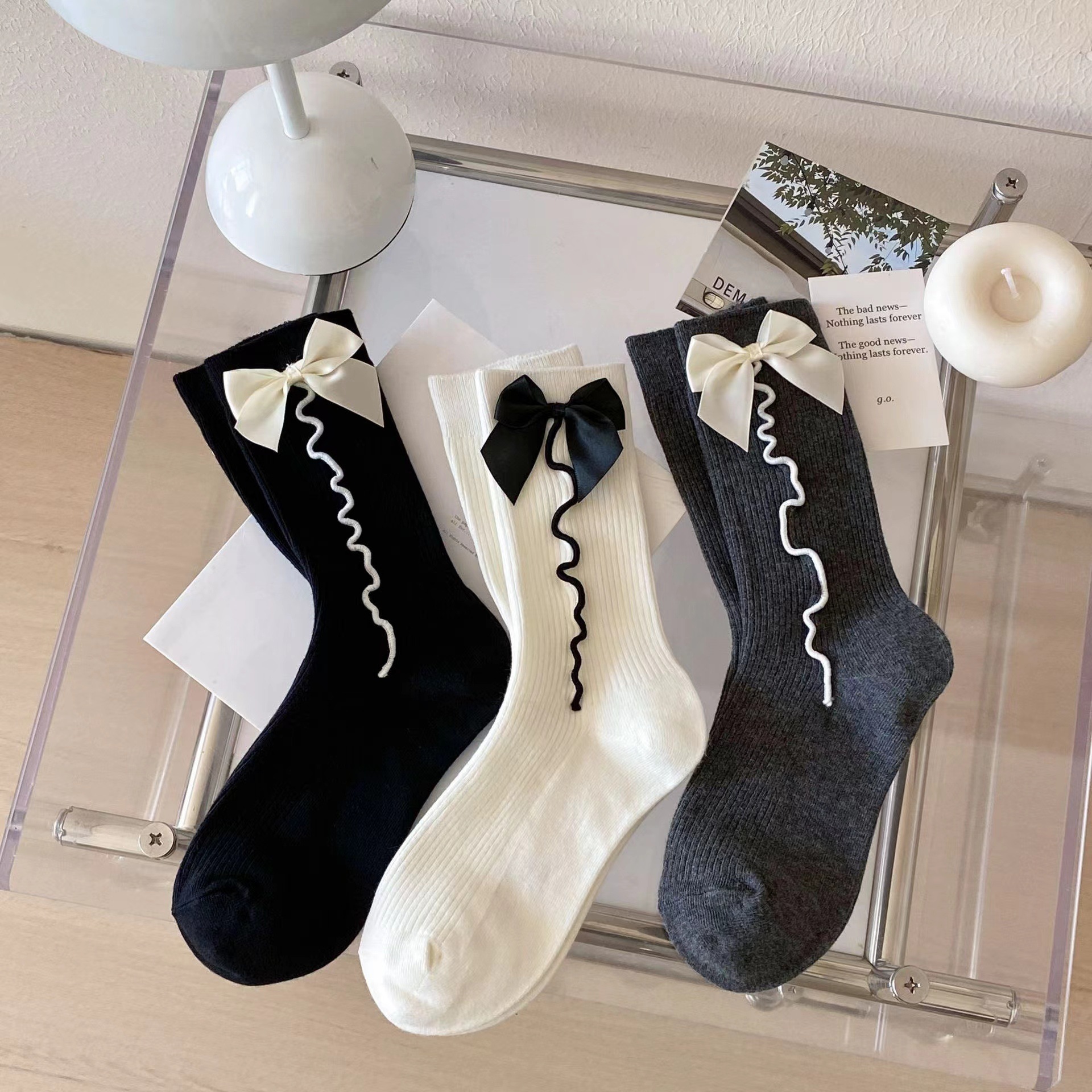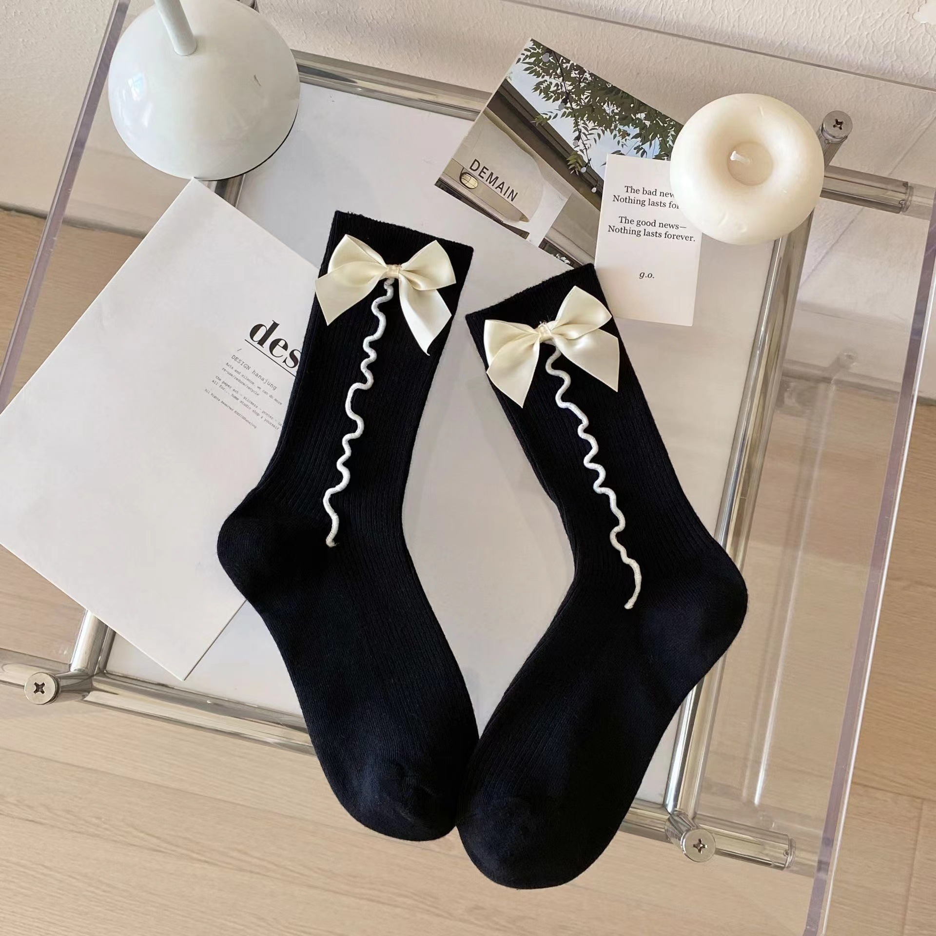 韓国風ロリータ可愛いJKソックス学生2025新型スラウチソックス和風スイートメッシュボウソックスレディース