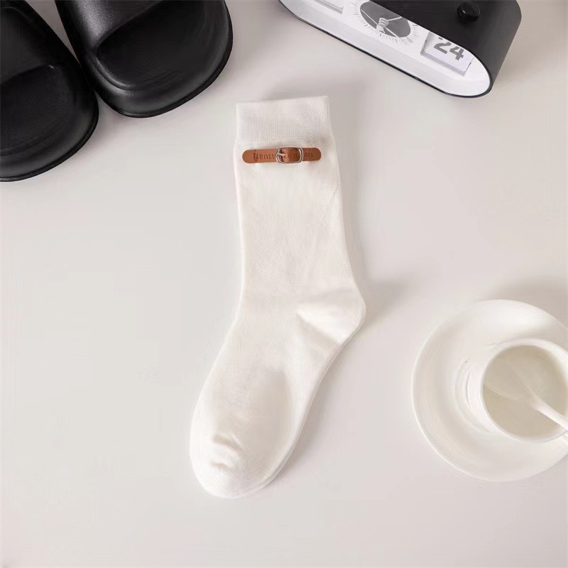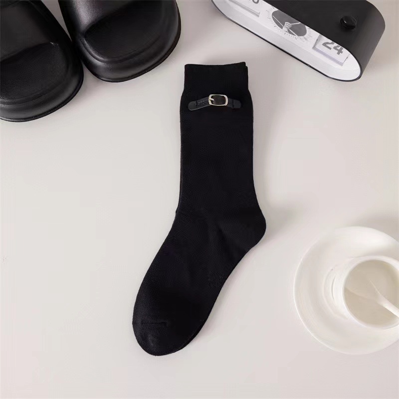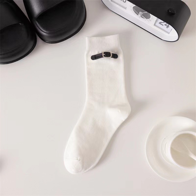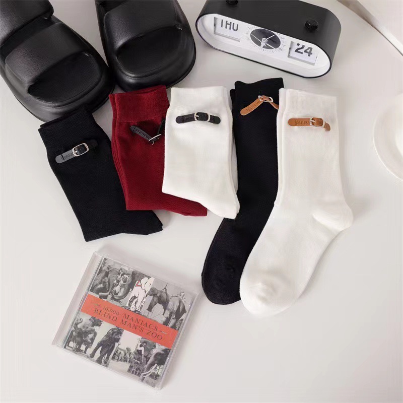 韓国風アンコラレッドソックスベルトバックルアクセサリー付きのトレンディなレディースソックス韓国風バーガンディのトレンディなレディースミドルカーフソックス