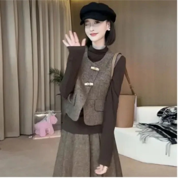 2025 冬季レディース韓国風ファッションおしゃれセット プラスサイズ対応 新作小衆エレガント万能 3 点セット