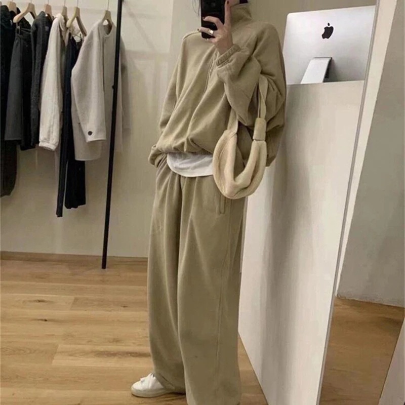 秋冬レディースファッショントレンドセット カジュアルスポーツ款 小柄体型向けエレガントスタンドカラースウェット + スウェットパンツ 2 点セット