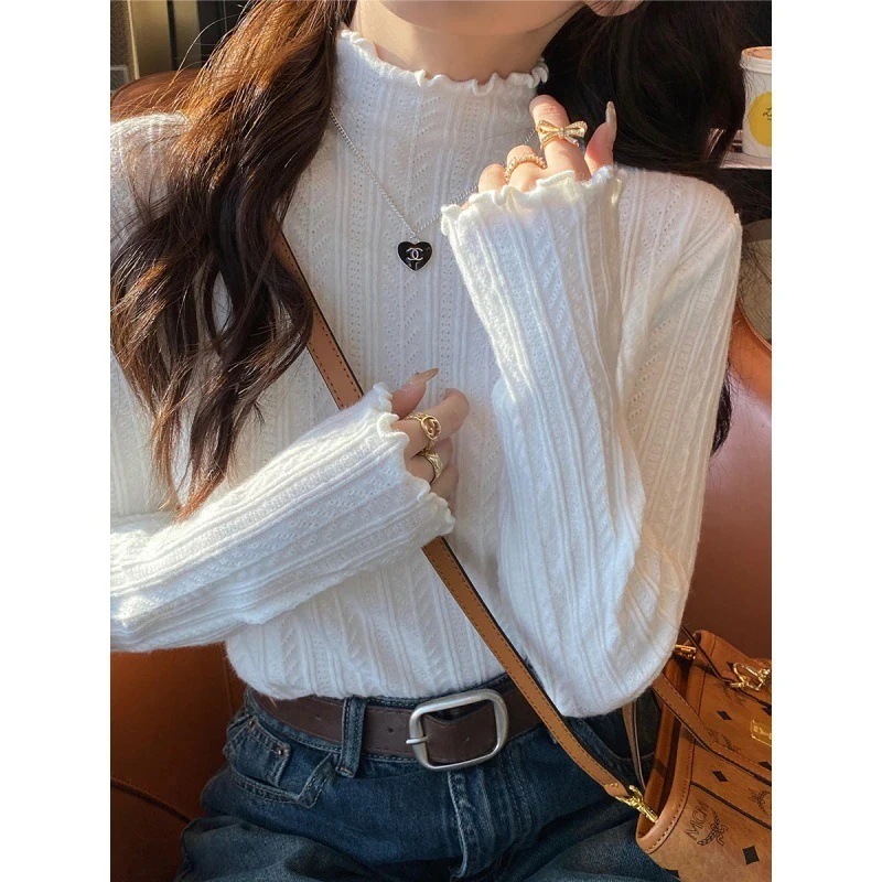 【人気商品】ニット 無地ハーフタートルネックベースニット 2026年秋冬新作 レース縁ジャージーベースニット レディース ベーシックニット