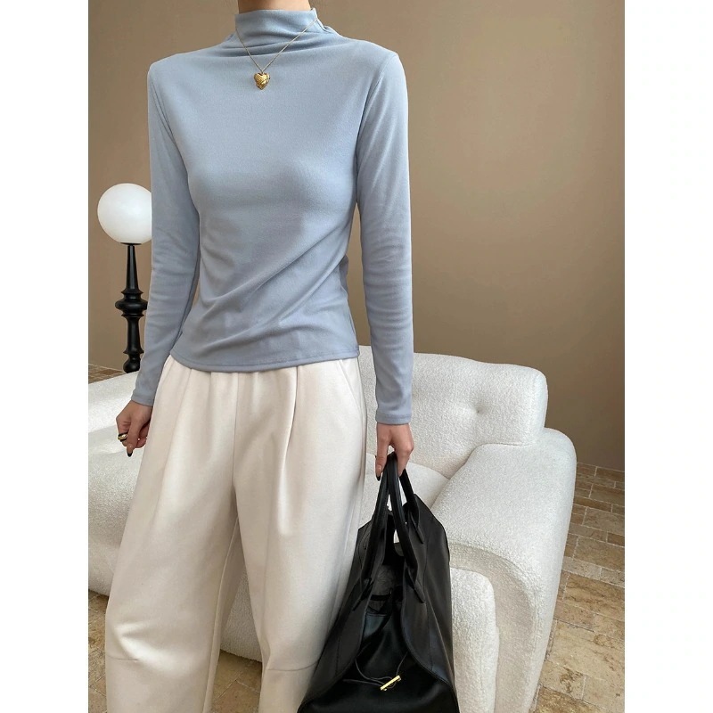 【人気商品】ニット ベーシック 肌触り柔らか起毛 ハーフハイネック フィット感 細身効果 万能インナーベーシックニット