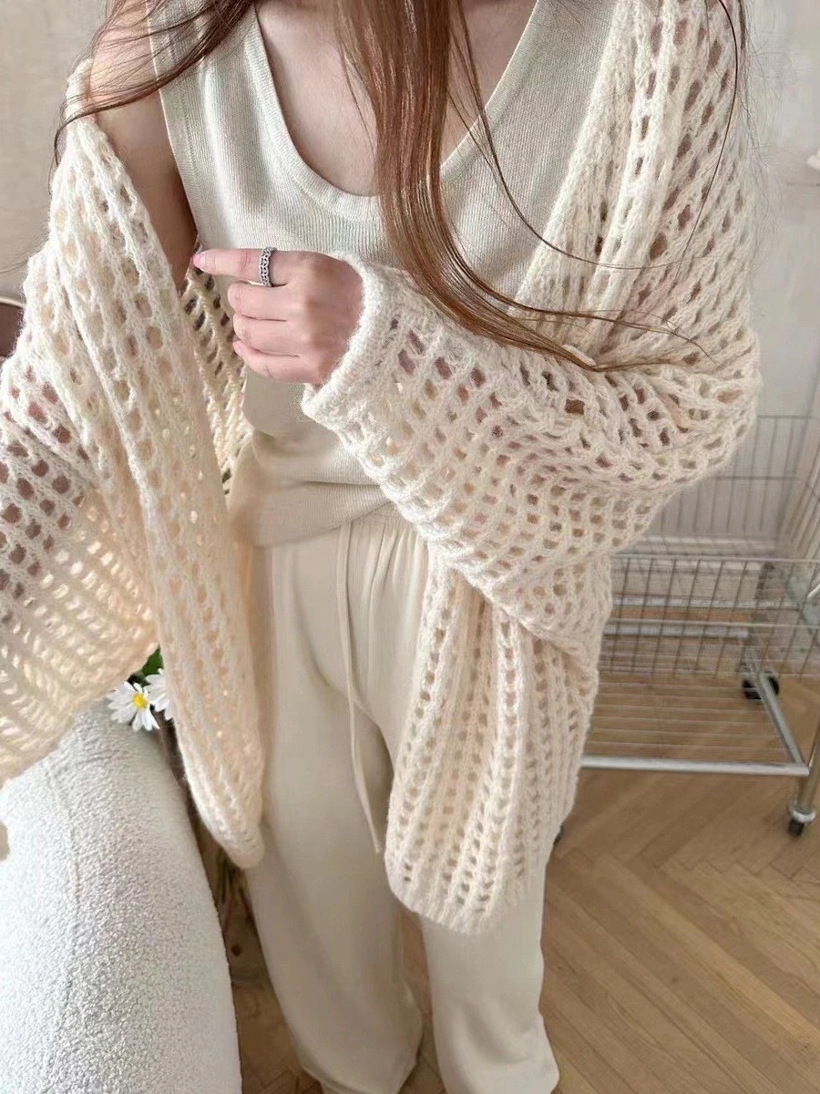 夏用薄手アウター エアコン対策 遮光 中丈カーディガン 絶品トップス フランス風レース編みカーディガン ニットカーディガン