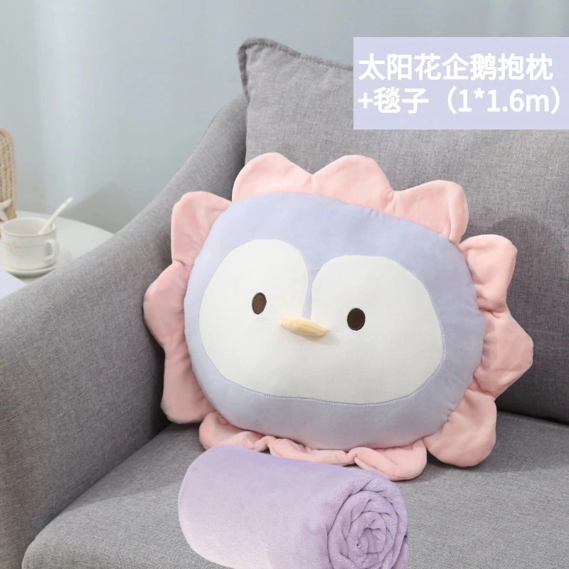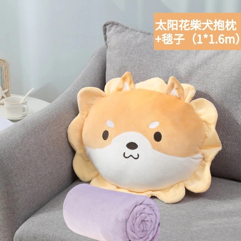 キャラクター花柄クッションブランケット 2in1 ベッドサイド・ソファ用 オフィス・車載両用
