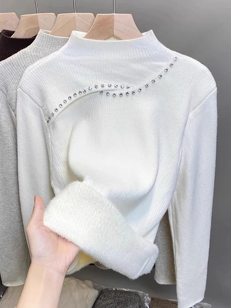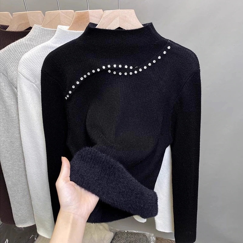 裏起毛 ハーフタートルネック セーター 女性用 フルファー 厚手 ベースレイヤー 2025年秋冬新作ニットトップス
