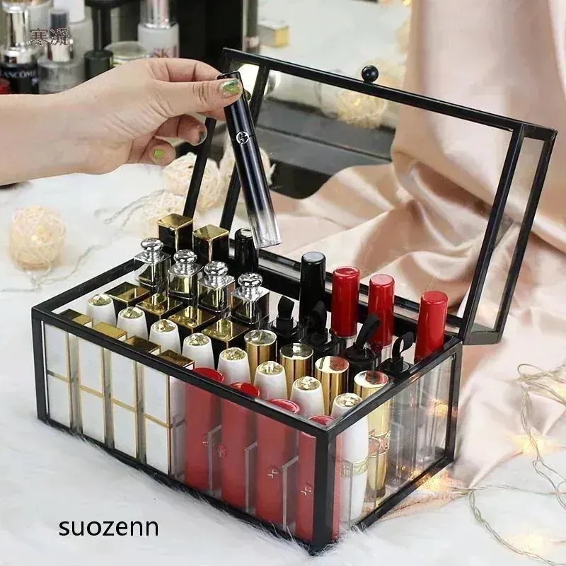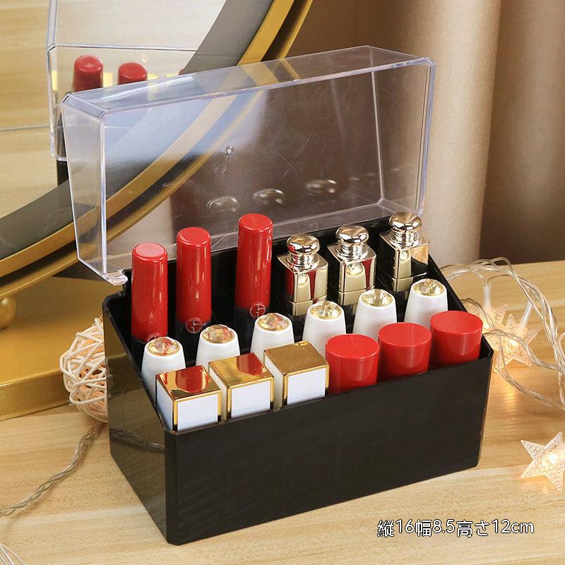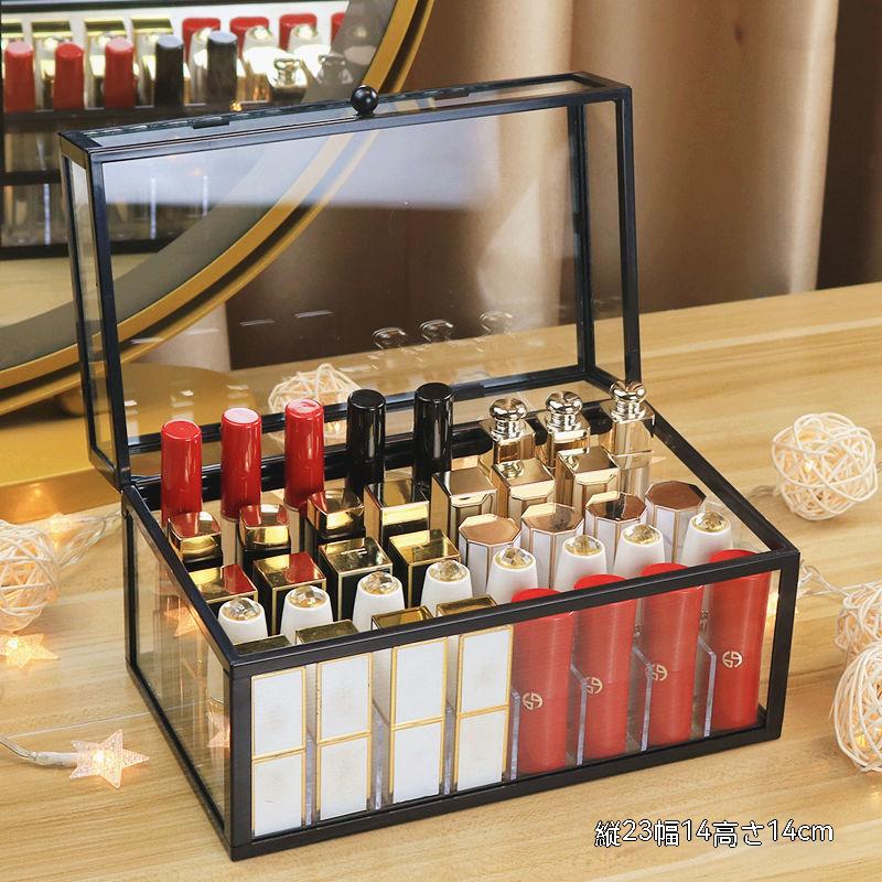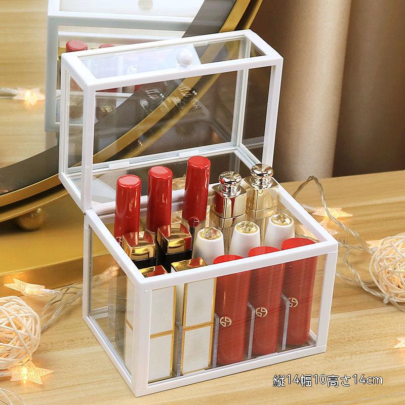 24最新モデルデスクトップ口紅収納化粧台マルチテープカバー防塵大容量ネット赤唇釉リップクリームガラス置物棚