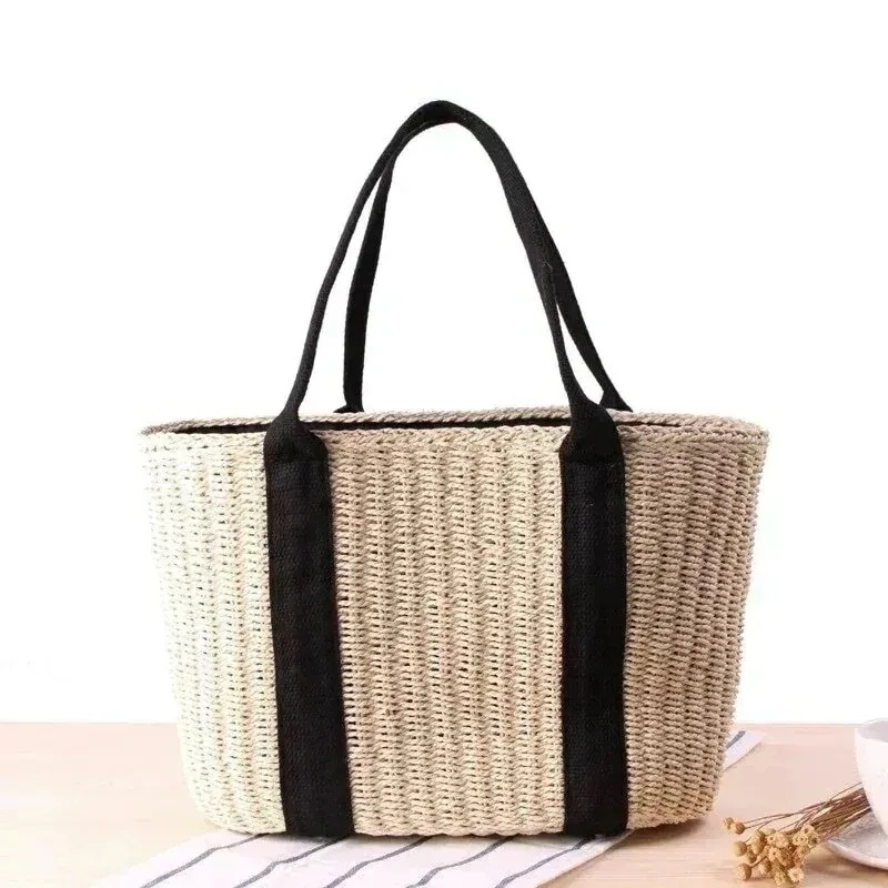 いスタイルのシンプルなストロー織りバッグ手織りの大容量ワンショルダーハンドキャリングデ