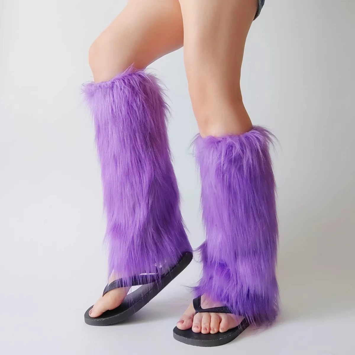 可愛い 30cm パープル レッグウォーマー 靴下 cm ふわふわ 25cm ロングファーロングルーズソックス Y2K Lolita 足カバー レディース 韓国風15cm 40cm