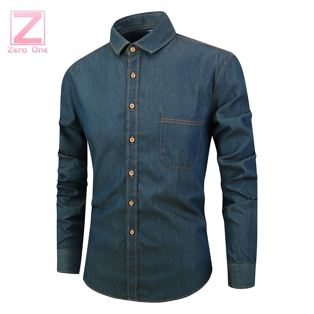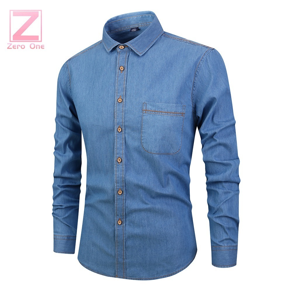 日常・レジャーに適し 長袖 デニムシャツ 綿 トップスとして ウォッシュ カジュアルスタイル 新作!メンズ デニム