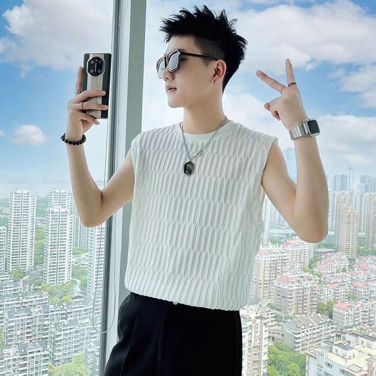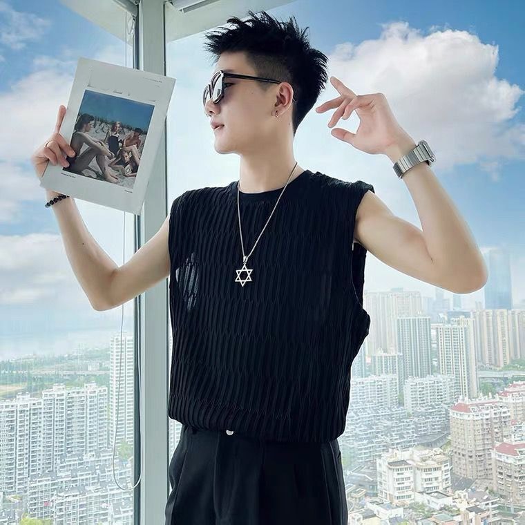 タンクトップ!トップス・T メンズファッション ノースリーブ シャツとして着用 ハンサムな印象を与える アイスシルク サマー
