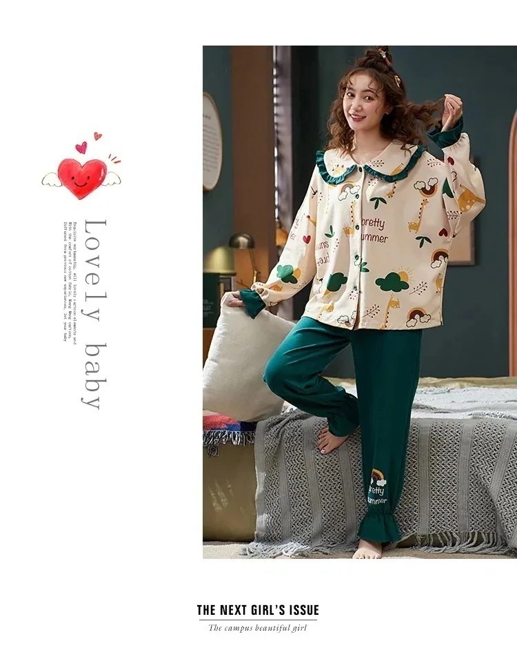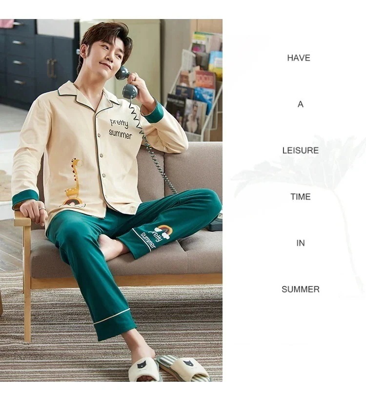 共着に 韓国ファッションカップルペアウェア おしゃれ ペアパジャマ 上下セット長袖