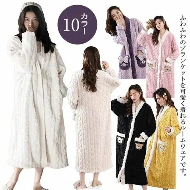 毛布 寝巻き レディース バスローブ 着る毛布 ワンピース おしゃれ マシュマロ 部屋着 ガウン 防寒 大人用 長袖 パジャマ 大きいサイズ あったか1289 もこもこ 前開き 用 ウェア かわいい