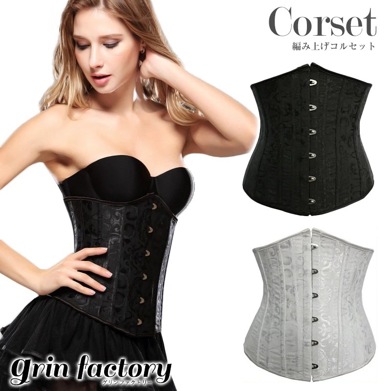 コルセットTバックくびれ編み上げダイエットアンダーバストブラックホワイト黒白ウエスト引き締めおしゃれ
