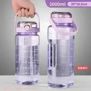 子供 大容量 釣り ウォーターボトル スポーツボトル 登山 持ち運び 直飲み ボトル マイボトル キ 軽量 ストロー付 プラスチック かわいい ワンタッチ 水筒 2000ml 大人用 ハンドル 目盛り
