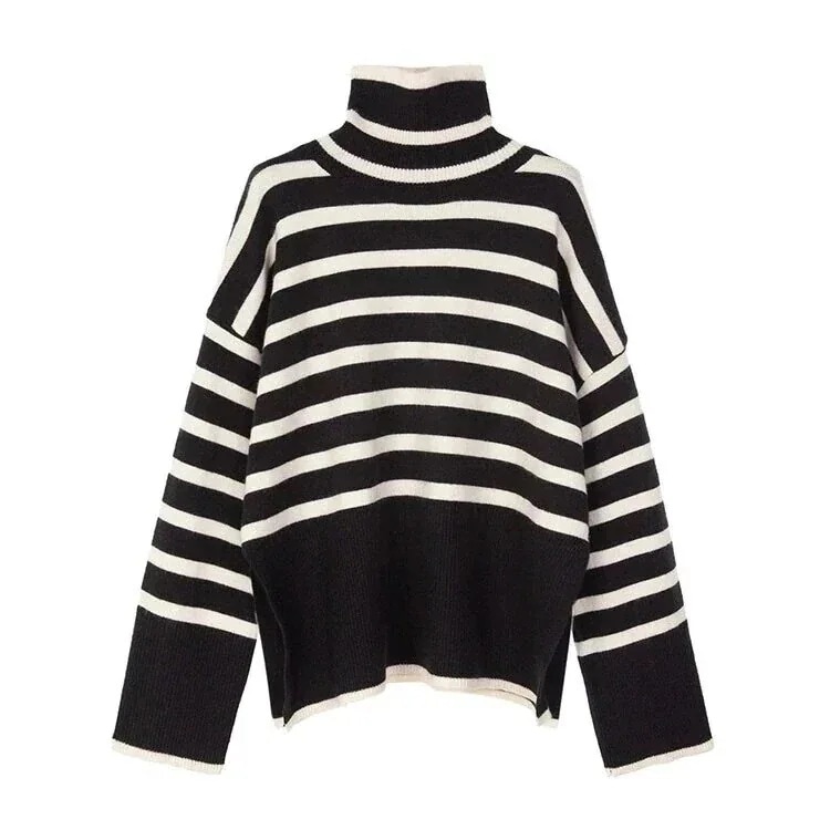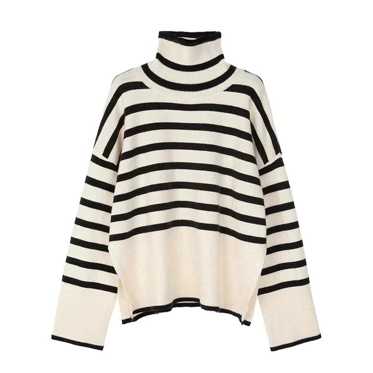 ニットカーディガン 秋冬 ボーダー柄 カシミヤタッチ 個性 ハイネック コントラストカラー 気質 新作 セーター パッチワーク ゆったり 着痩せ 質感
