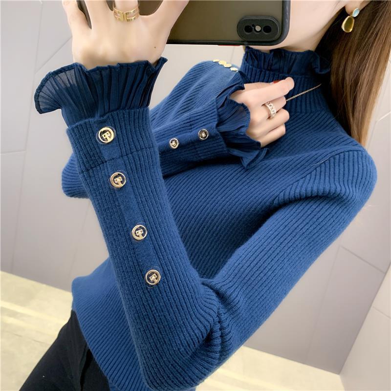 ハイネック タートルネックニット ニットカーディガン パッチワーク 木耳縁 着痩せ カシミヤタッチ インナー セーター レース