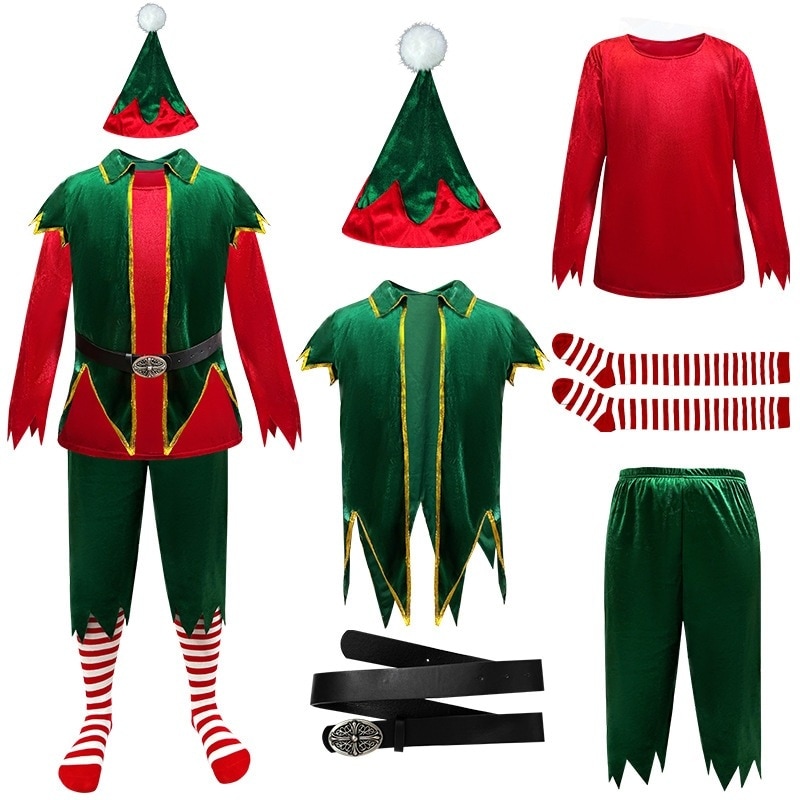 クリスマスコスチューム クリスマス衣装 グリーン クリスマスドレス 男女兼用 大人用 カップルデザイン 舞台衣装