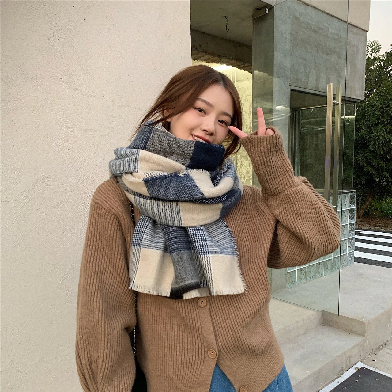 デイリーマフラーマフラースト一ルマフラ一デイリーマフラー韓国語版秋冬厚手防寒ストールのレトロな格子縞模造カシミヤ学生スカーフ