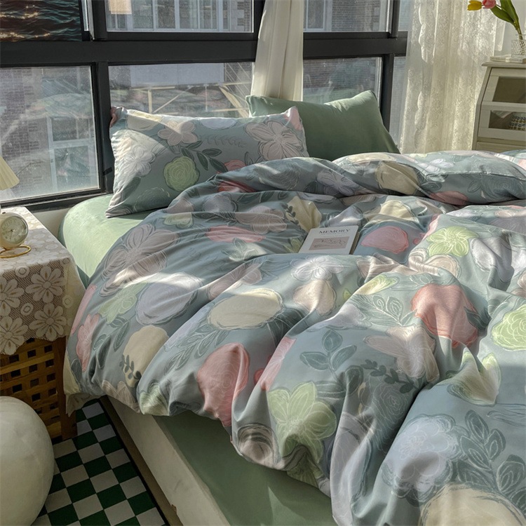 INSスタイル 4点セット プリンセススタイル 春 秋 寝具 ベッドスカート シーツ 蓮の葉のレース
