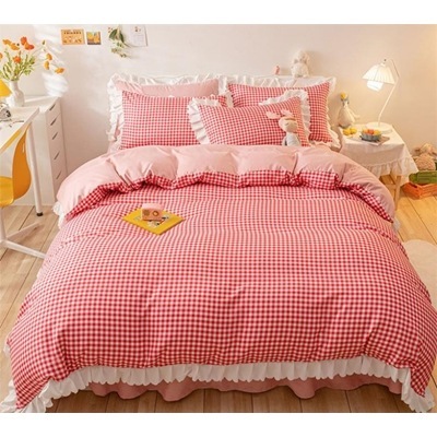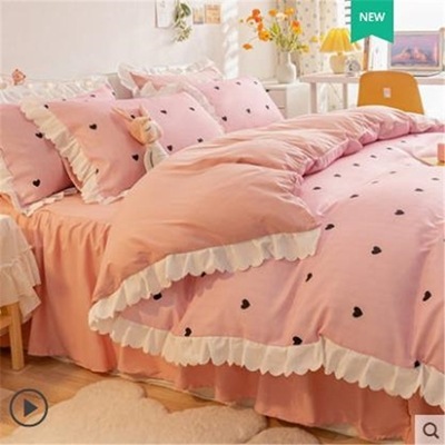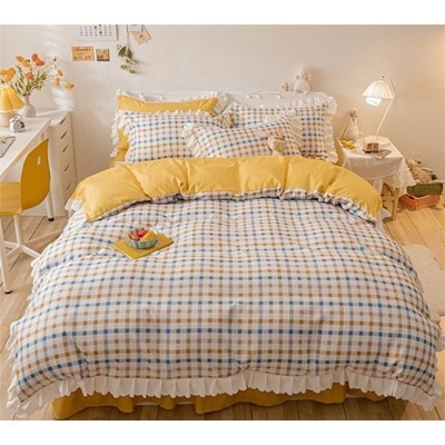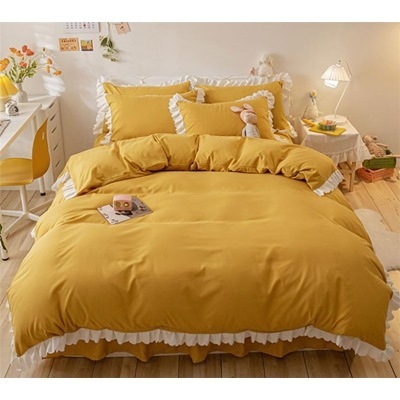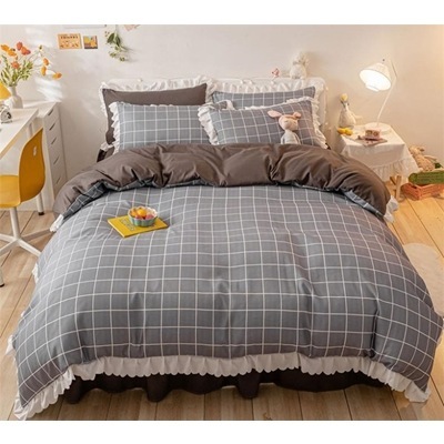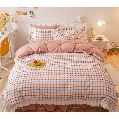 Qoo10のクーポン使えます送料無料韓国スタイル ウォッシュドコットン 4点セット 北欧スタイル INS 春と秋 キルトカバー シーツ ベッド 3点セット プリンセススタイル