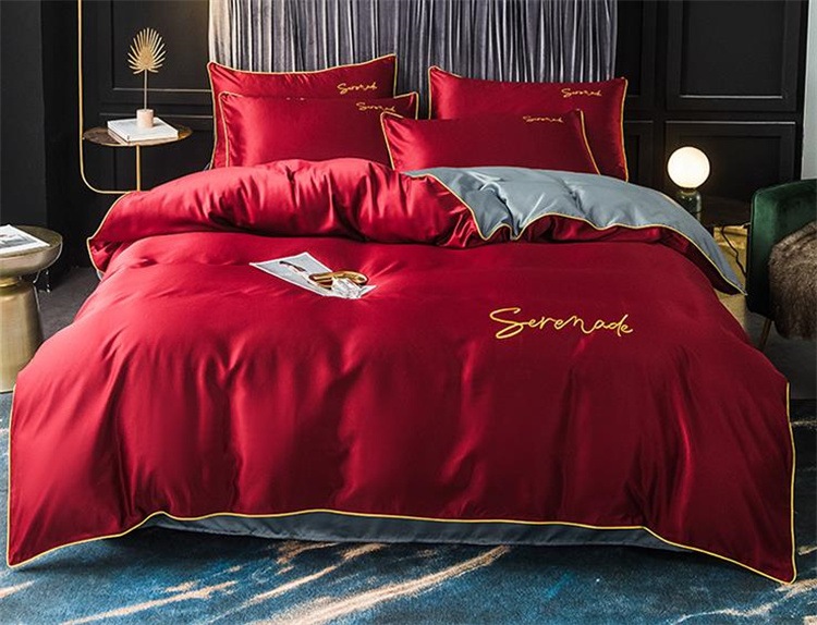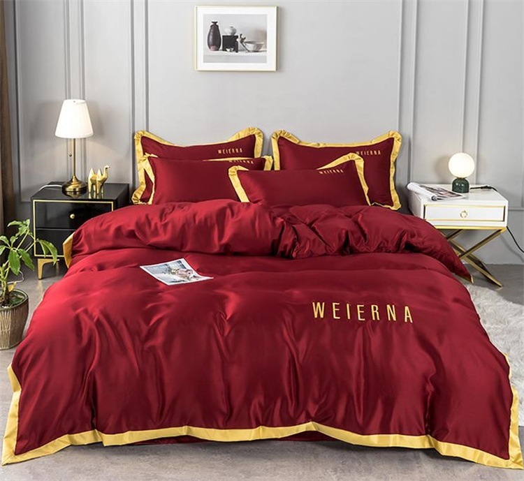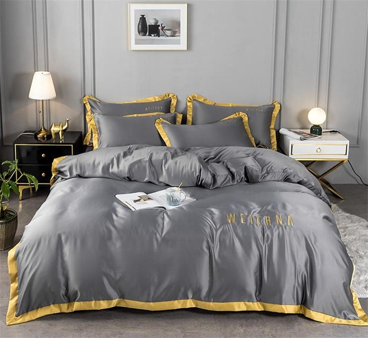INSスタイル 4点セット 夏 シルキー 裸の睡眠 シーツ 掛け布団カバー 掛け布団カバー 寝具
