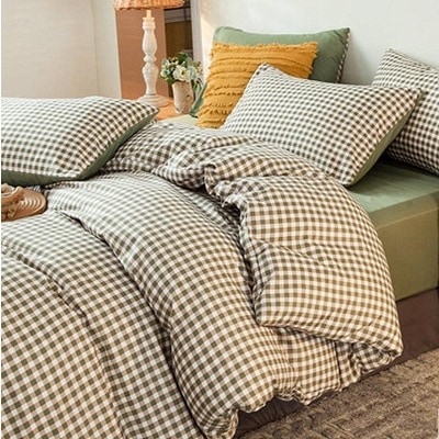 こなれた大人カジュアルを目指したい!韓国ファッション 厚手 北欧 簡約 寝具 4点セット キルトカバー ベッドシート カラーマッチング 格子縞 気質 3点セット 上品映え トレンド
