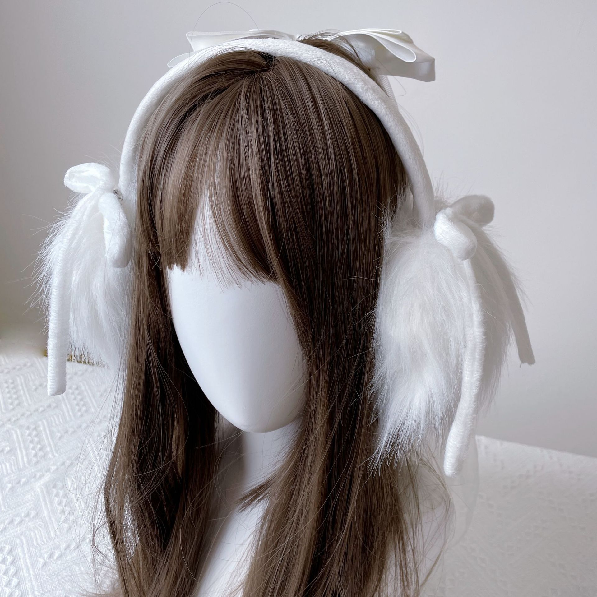 秋冬 快適 人气新作高評価 冬 耳当て かわいい 蝶ネクタイ ホワイト ロングファー イヤーウォーマー 韓国ファッション