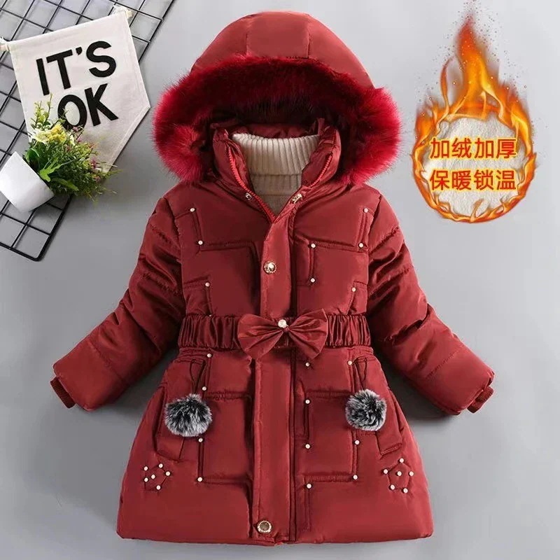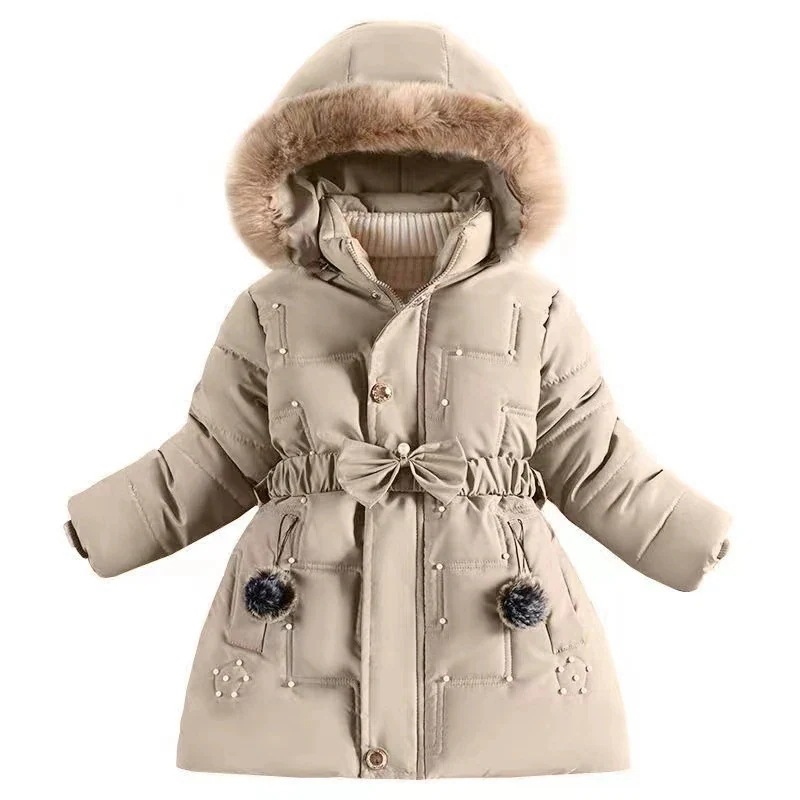 キッズ 中綿コート 冬用裏地付き厚手コート 中~大サイズ 子供用ミドル丈綿コート ファッションコート