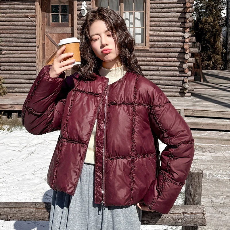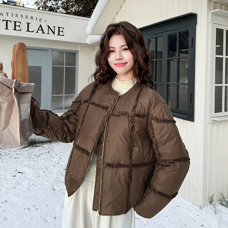 2025 冬季新作ダウンライクコットンコート レディース小柄体型丸襟韓国風ショートリラックスドファッション保温外套